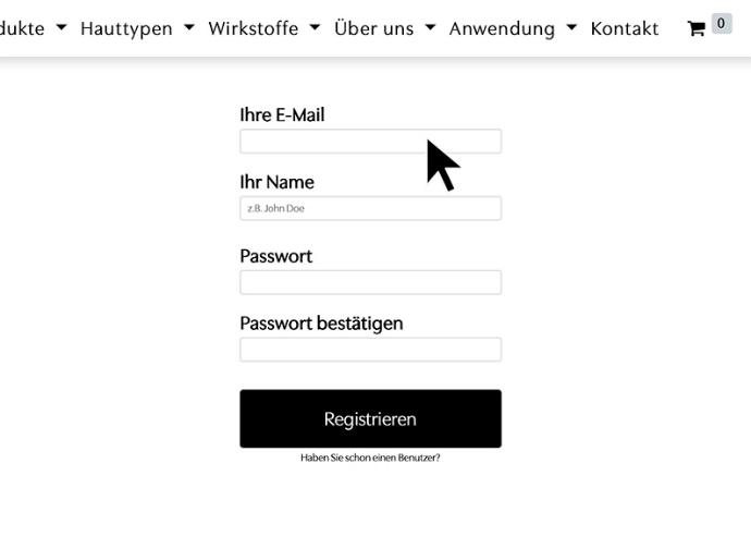 Klicken Sie in der Shop-Menüleiste oben rechts auf „Anmelden“, um sich mit Ihrem bestehenden Fachhandels-Konto einzuloggen oder sich zu registrieren.